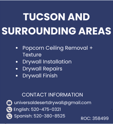 Serving Tucson with drywall expertise, from popcorn ceiling removal to fresh textures for any space.